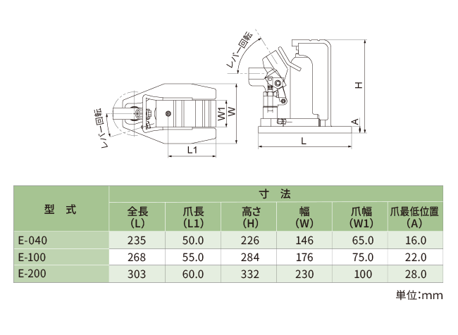 - 爪部2.0t 頭部4.0t/爪部5.0t 頭部10.0t/爪部10.0t 頭部20.0t